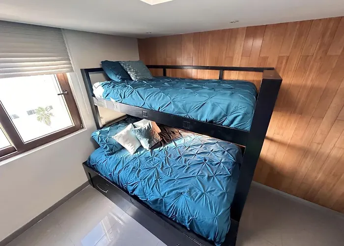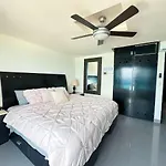 This apartment is equipped with an electric kettle, a refrigerator, and kitchenware, ensuring your comfort. Fast access to Cancun airport within 20 km is provided.